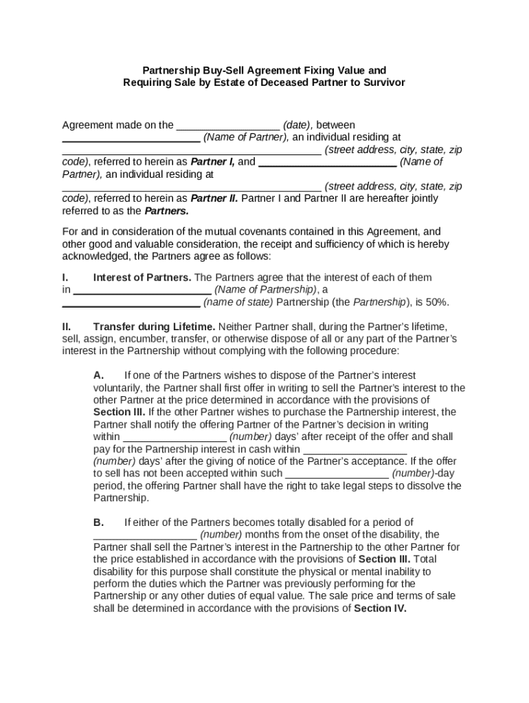 Get the free Partnership Buy-Sell Agreement Fixing Value and Requiring Sale by Estate of Deceased...