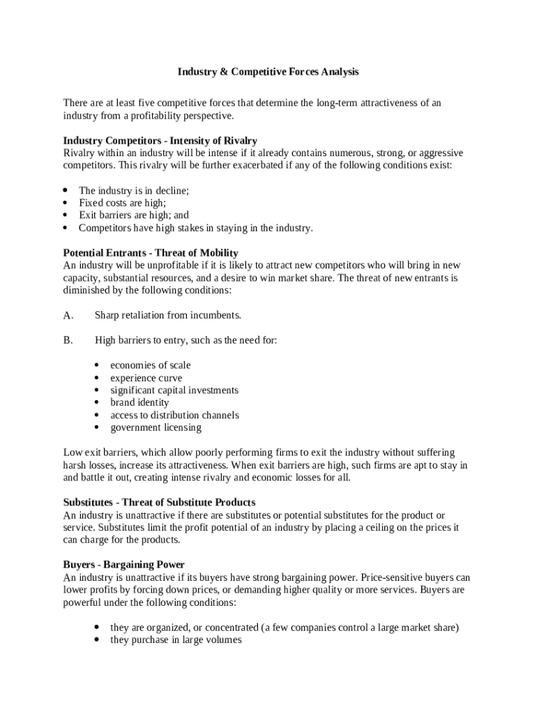 Get the free Worksheet - Industry & Competitive Forces Analysis template