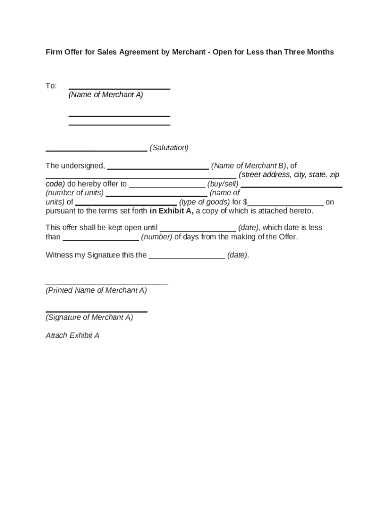 Get the free Firm Offer for Sales Agreement by Merchant - Open for Less than Three Months template