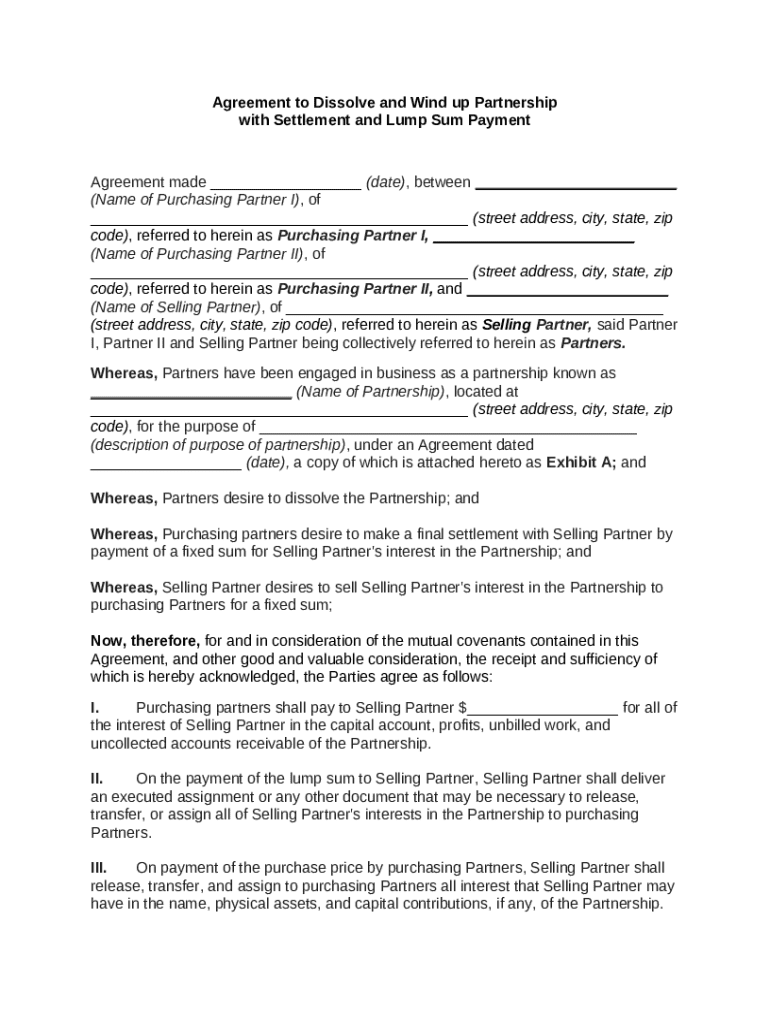 Get the free Agreement to Dissolve and Wind up Partnership with Settlement and Lump Sum Payment t...