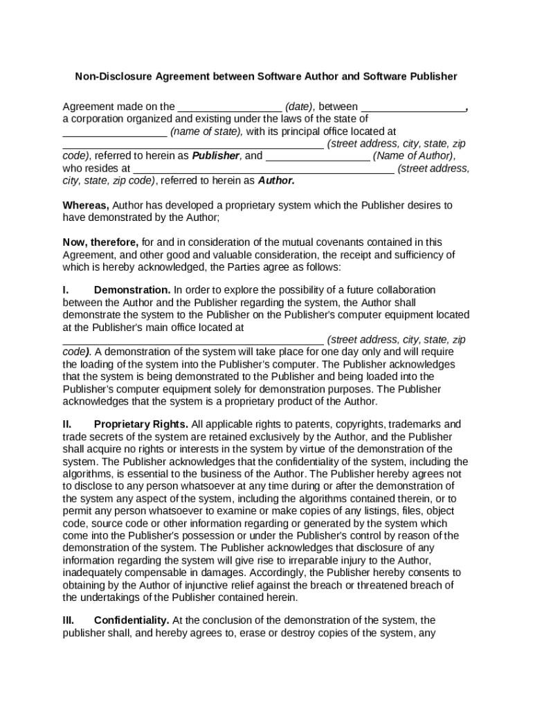 Comprehensive Guide to Non-Disclosure Agreement Between Software Author and Software Publisher