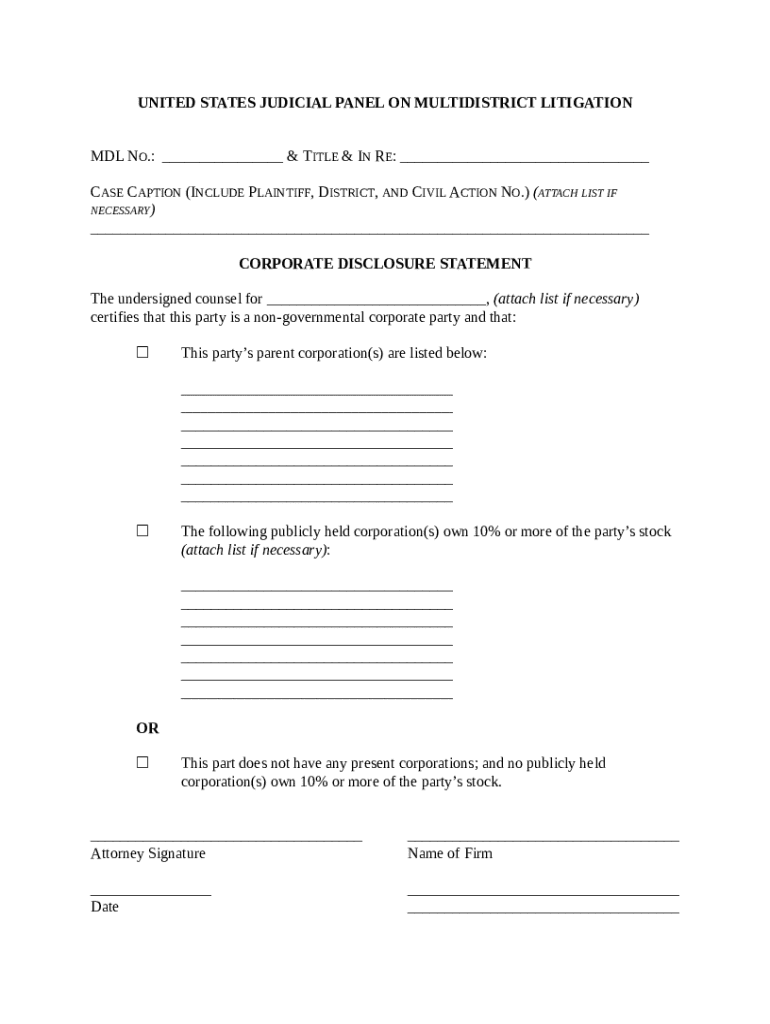 Get the free Corporate Disclosure Statement in United States Judicial Panel on Multi-District Lit...