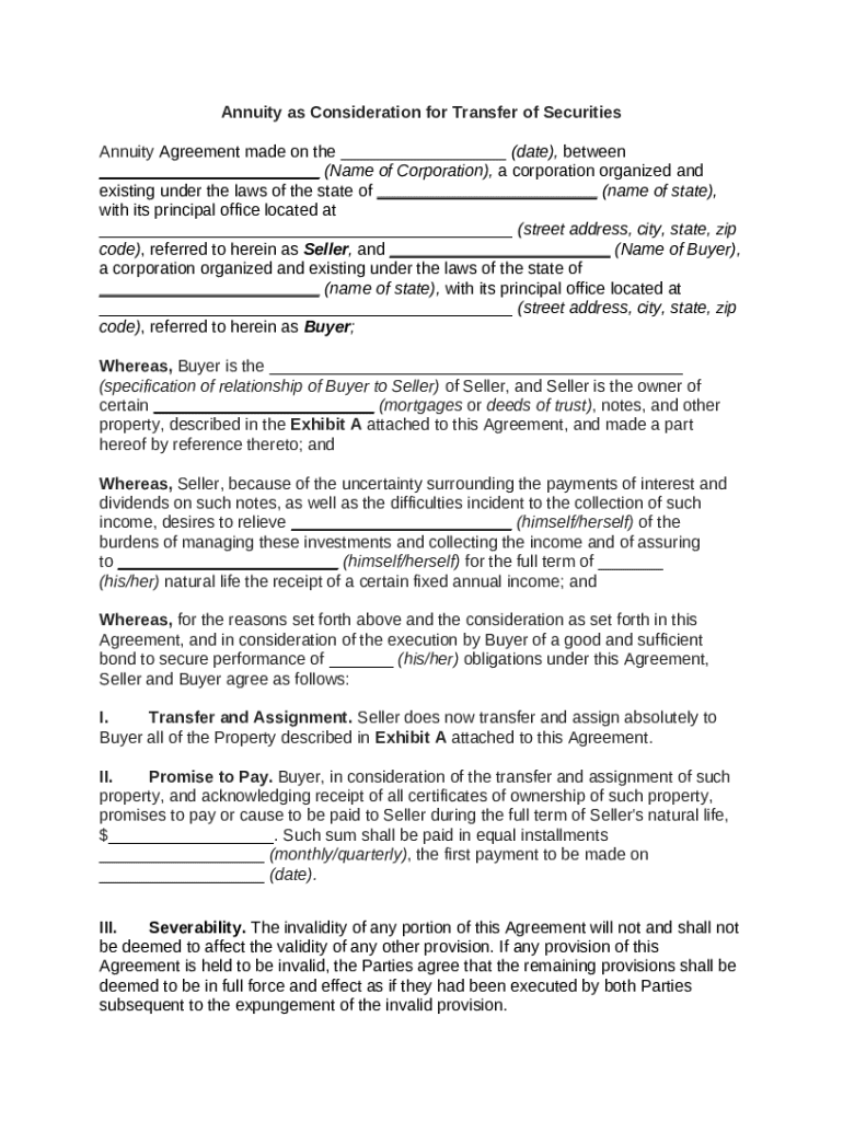 Specify the annuity or properties involved in the transaction fully to mitigate any future ambiguity.