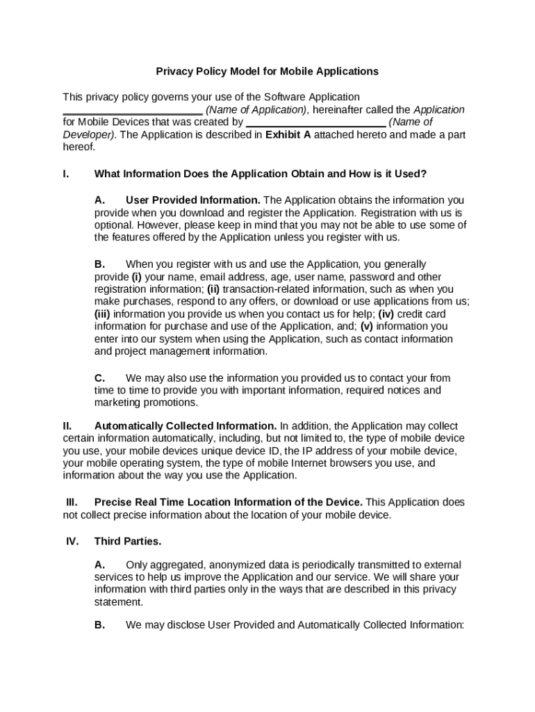 Get the free Privacy Policy Model for Mobile Applications template