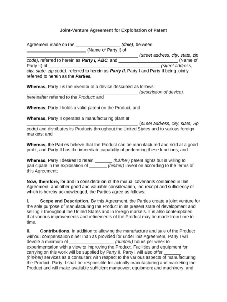 Comprehensive Guide to Joint-Venture Agreement for Exploitation