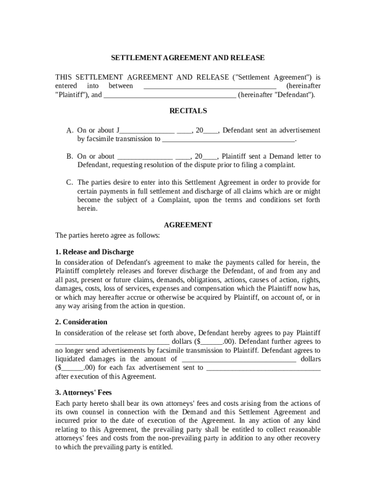 Get the free Settlement Agreement and Release template