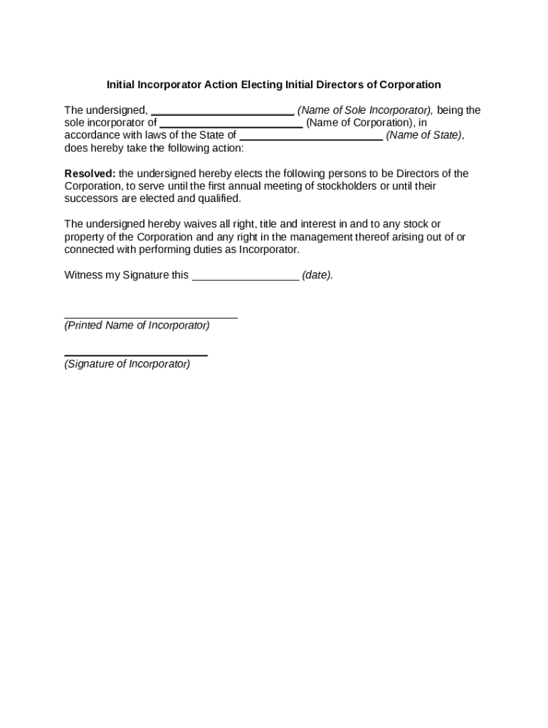 Long-Read How-to Guide on Initial Incorporator Action Electing Form