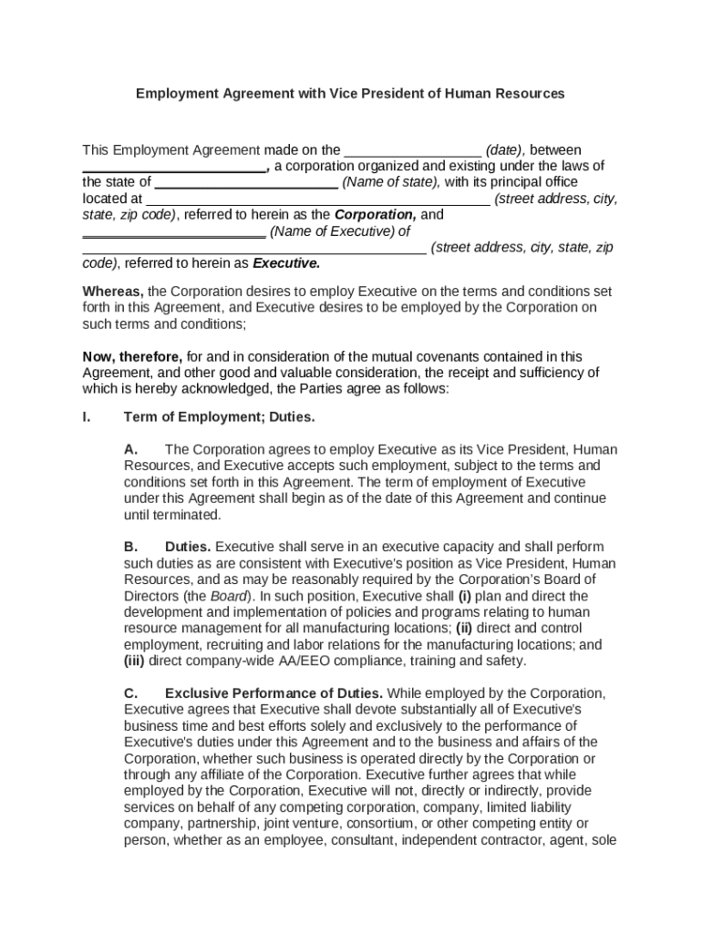 Get the free Employment Agreement with Vice President of Human Resources template