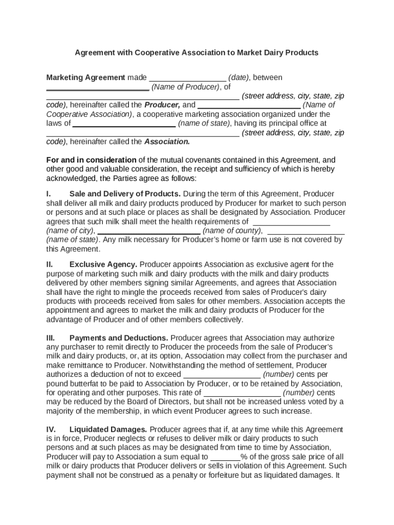 Get the free Agreement with Cooperative Association to Market Dairy Products template