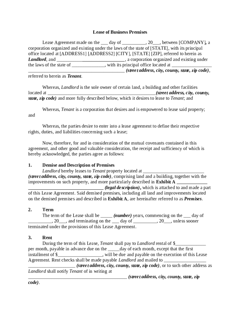 Get the free Lease of Business Premises template