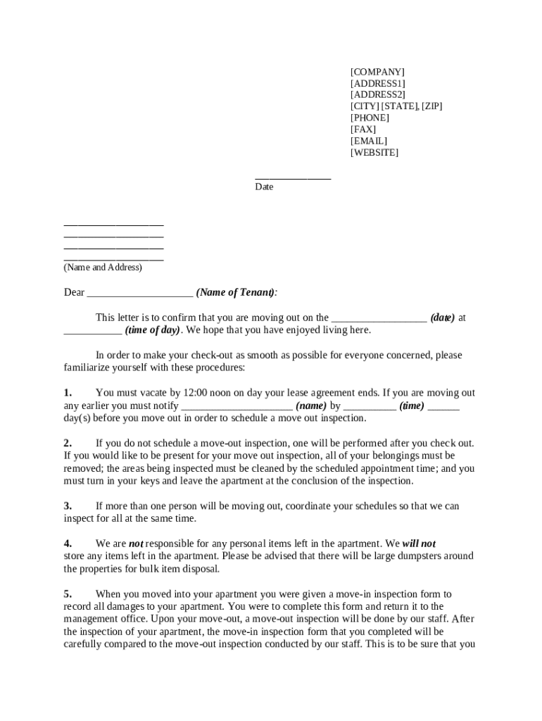 Get the free Letter to Tenant-Move Out detailed checklist template