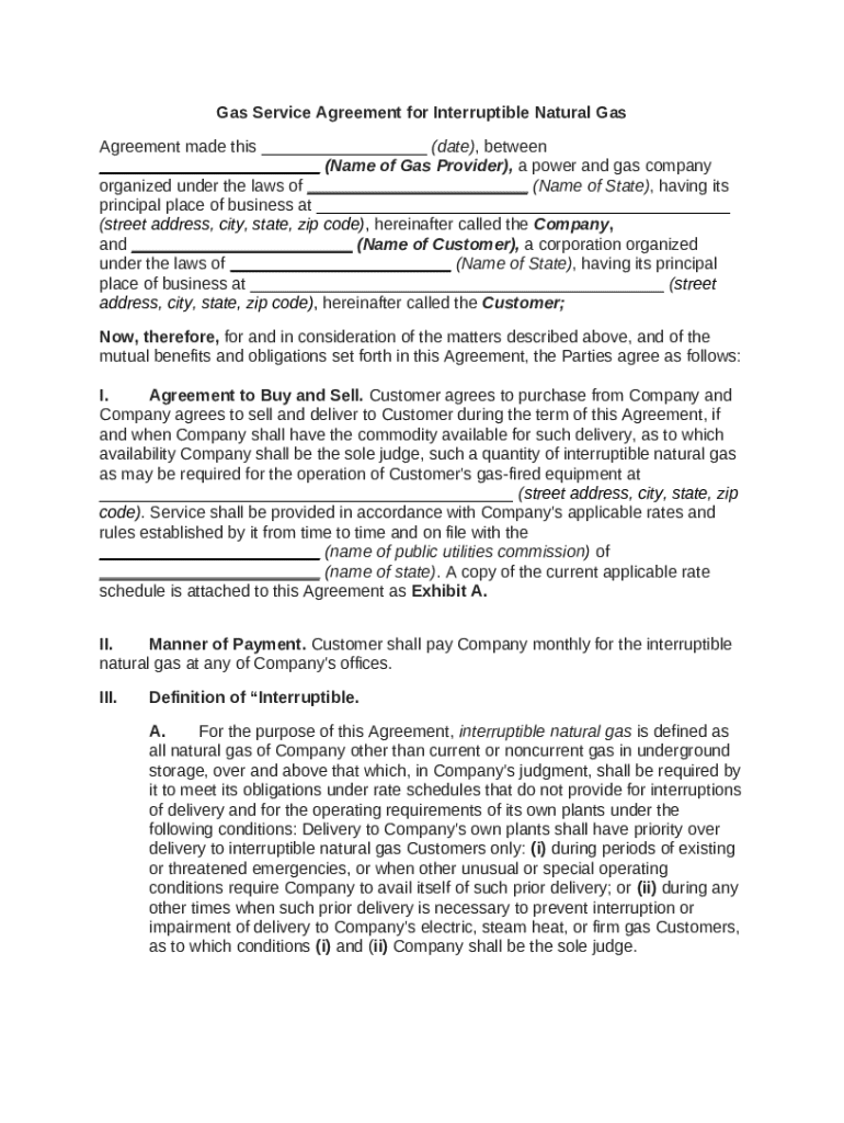 Understanding the Gas Service Agreement for Interruptible Natural Gas