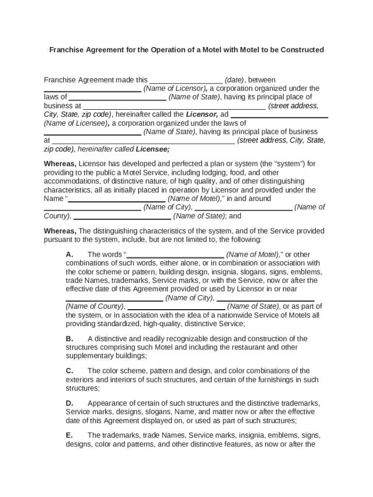 Get the free Franchise Agreement for the Operation of a Motel with Motel to be Constructed template