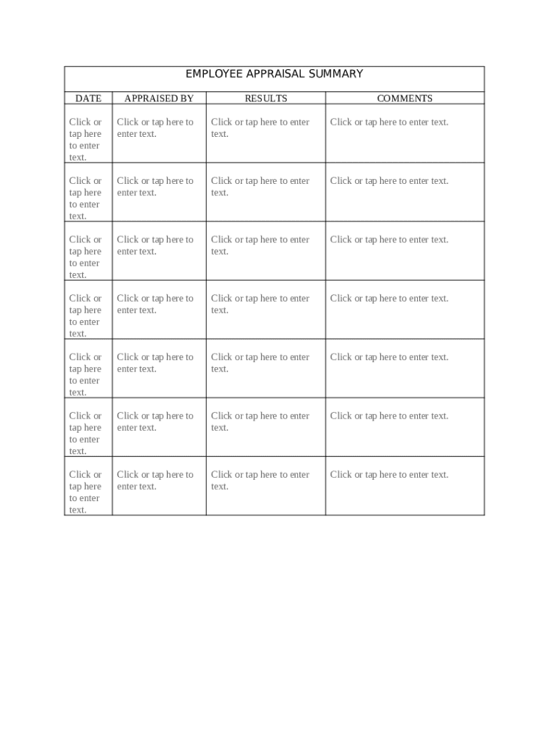 An employee appraisal summary is a documented evaluation that provides feedback on an employee's performance, strengths, and areas for improvement over a specified period.