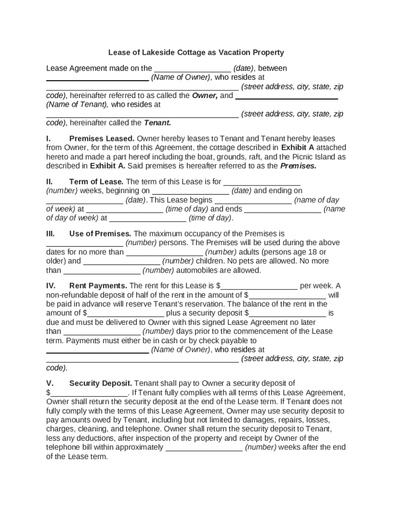 Comprehensive Guide to the Lease of Lakeside Cottage Agreement