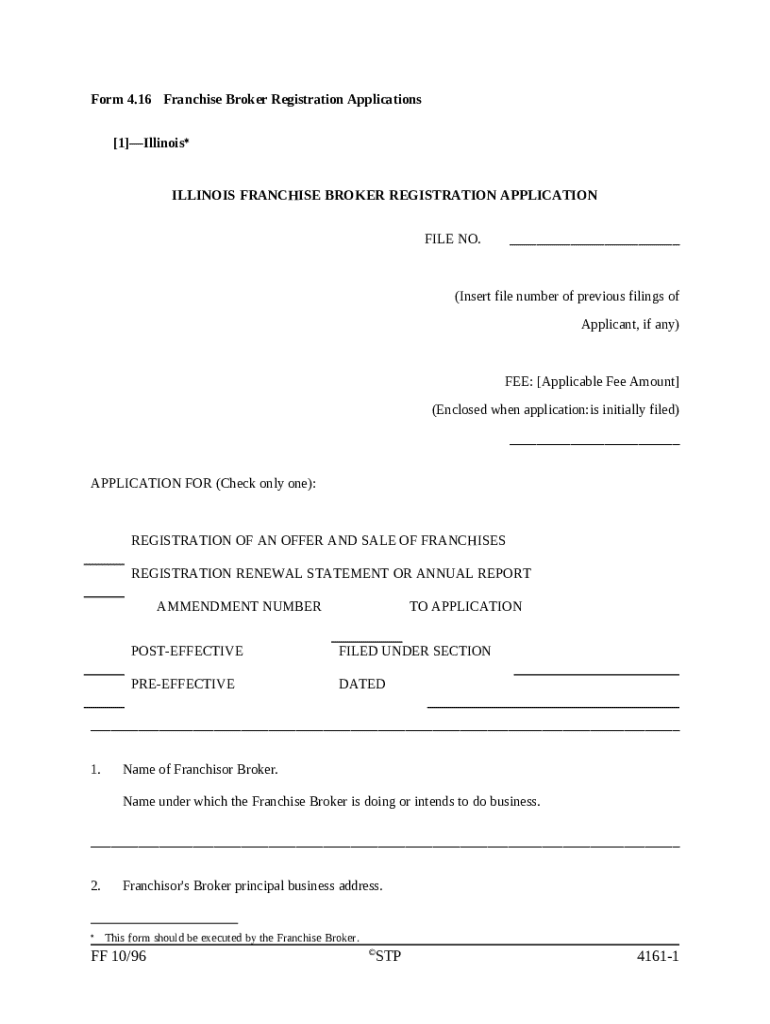 Get the free Illinois Franchise Broker Registration Application template