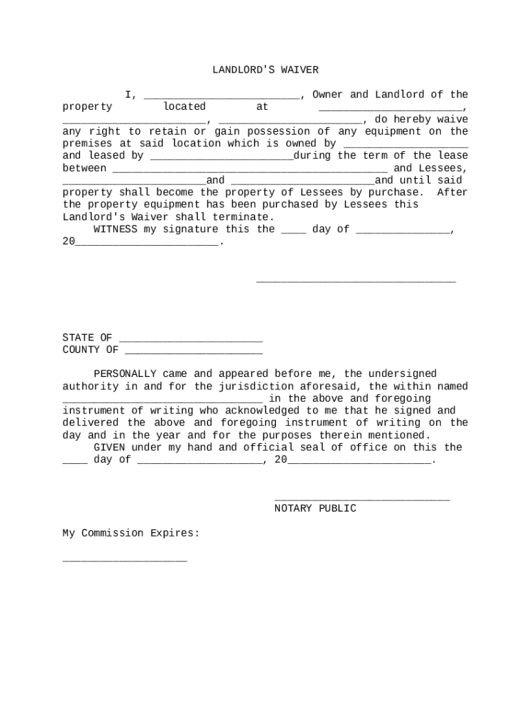 Get the free Landlord's Waiver of Right to Retain Equipment template