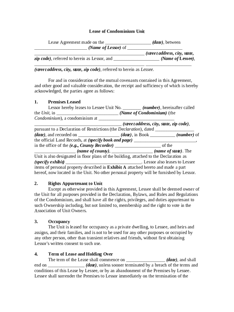 Get the free Lease or Rental of Condominium Unit template