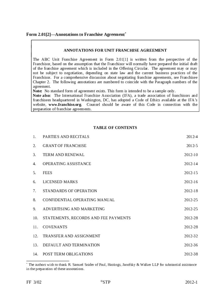 Get the free Annotations for Unit Franchise Agreement template