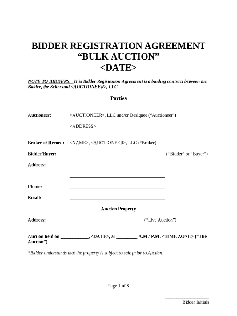 Get the free Bidder Registration Agreement - "Bulk Auction";"This is a sample Bidder Registration...