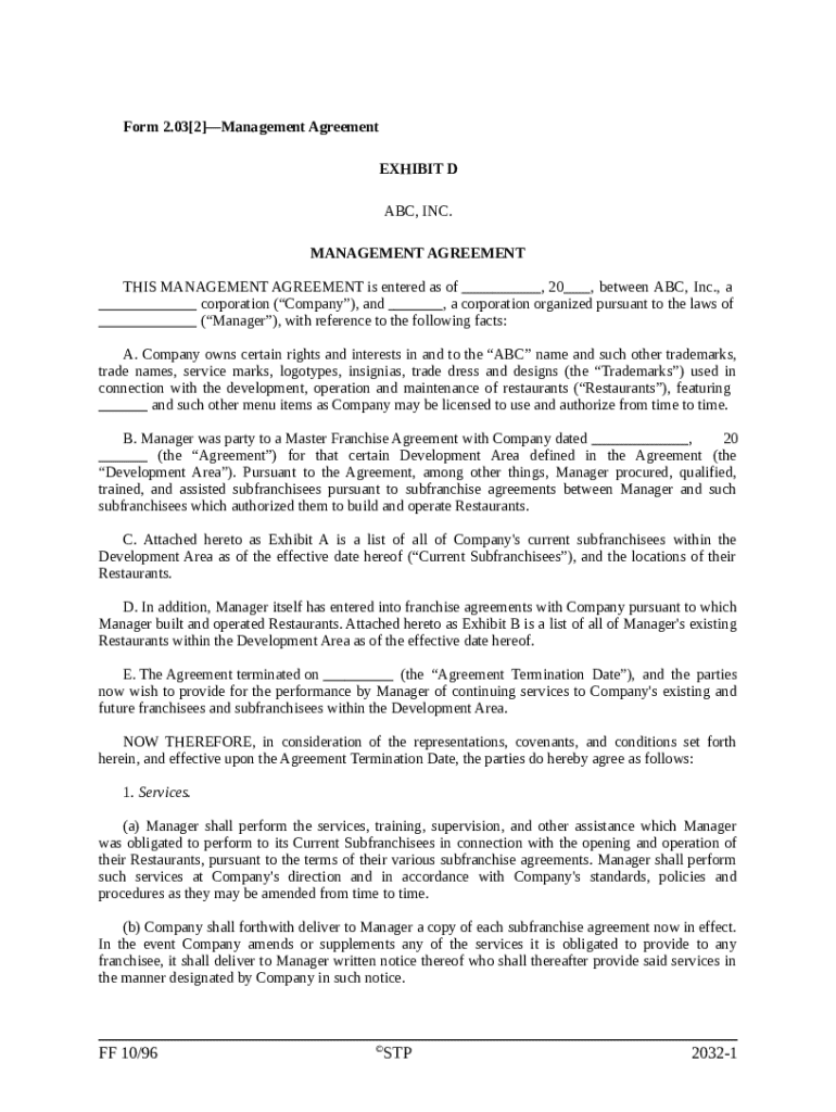 Get the free Franchise Management Agreement template