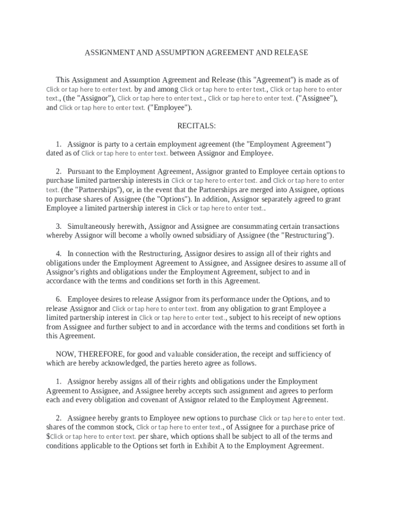 Get the free Assignment and Assumption Agreement and Release template