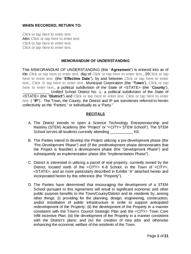 Get the free Memorandum of Understanding between a Town, County, District and Corporation template