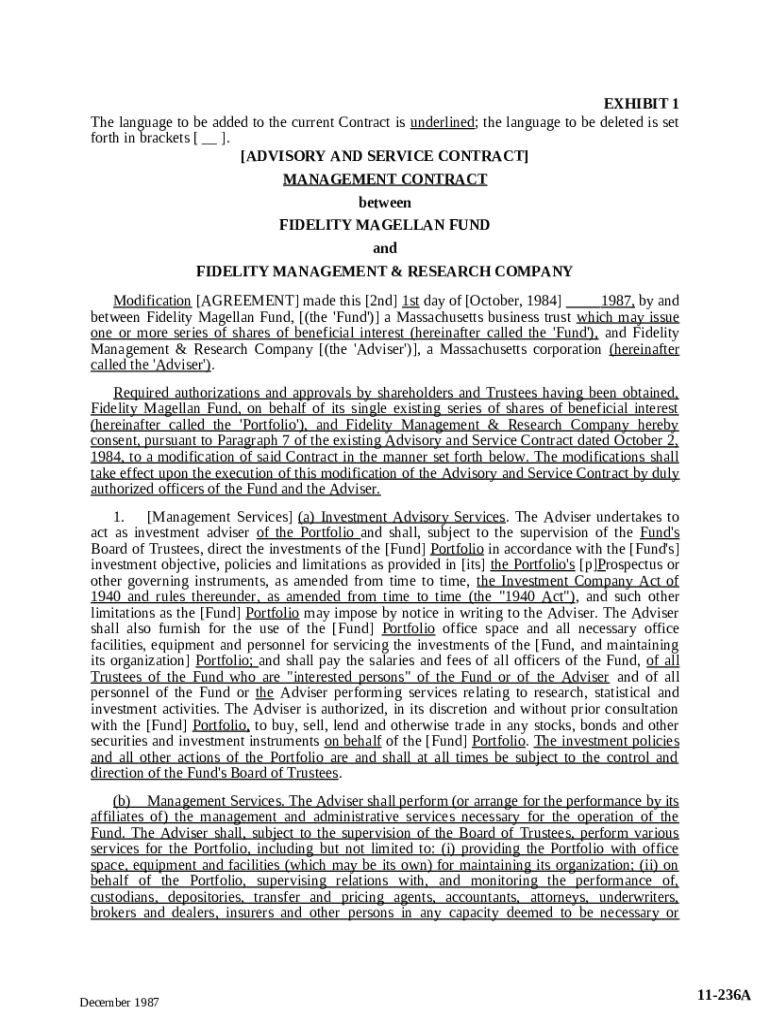 This is an Advisory and Service Contract, to be used across the United States. It is a Management Contract between investment company and investment adviser.