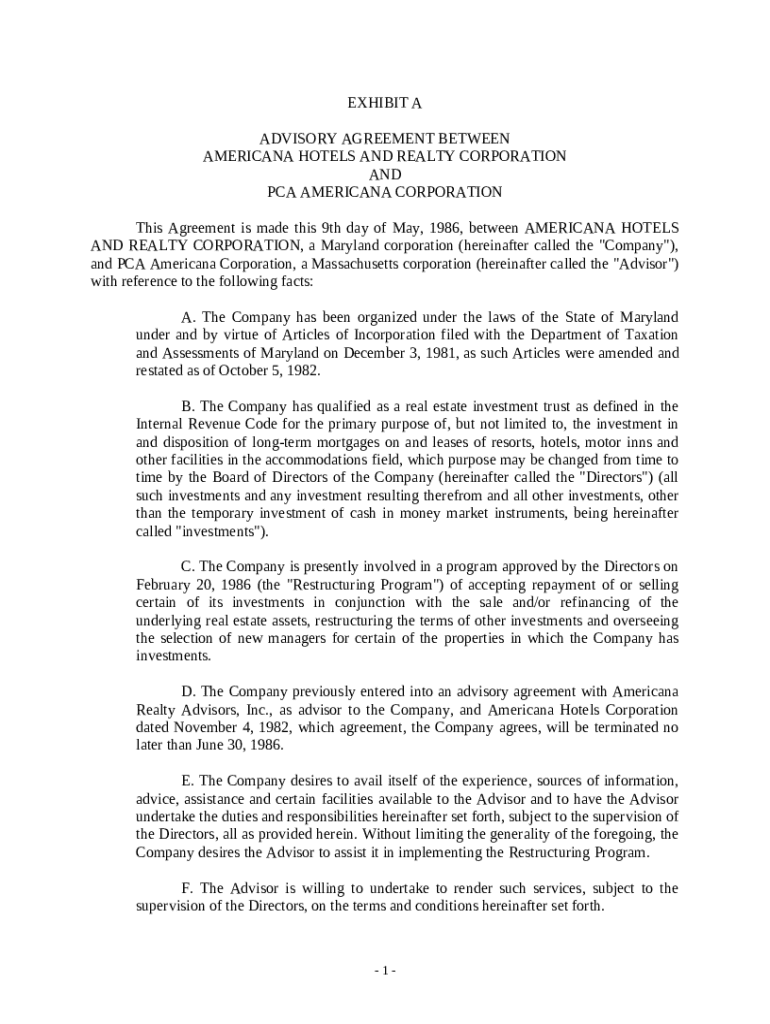 An advisory agreement between real is a legal document outlining the terms and conditions under which a financial advisor provides services to a client.
