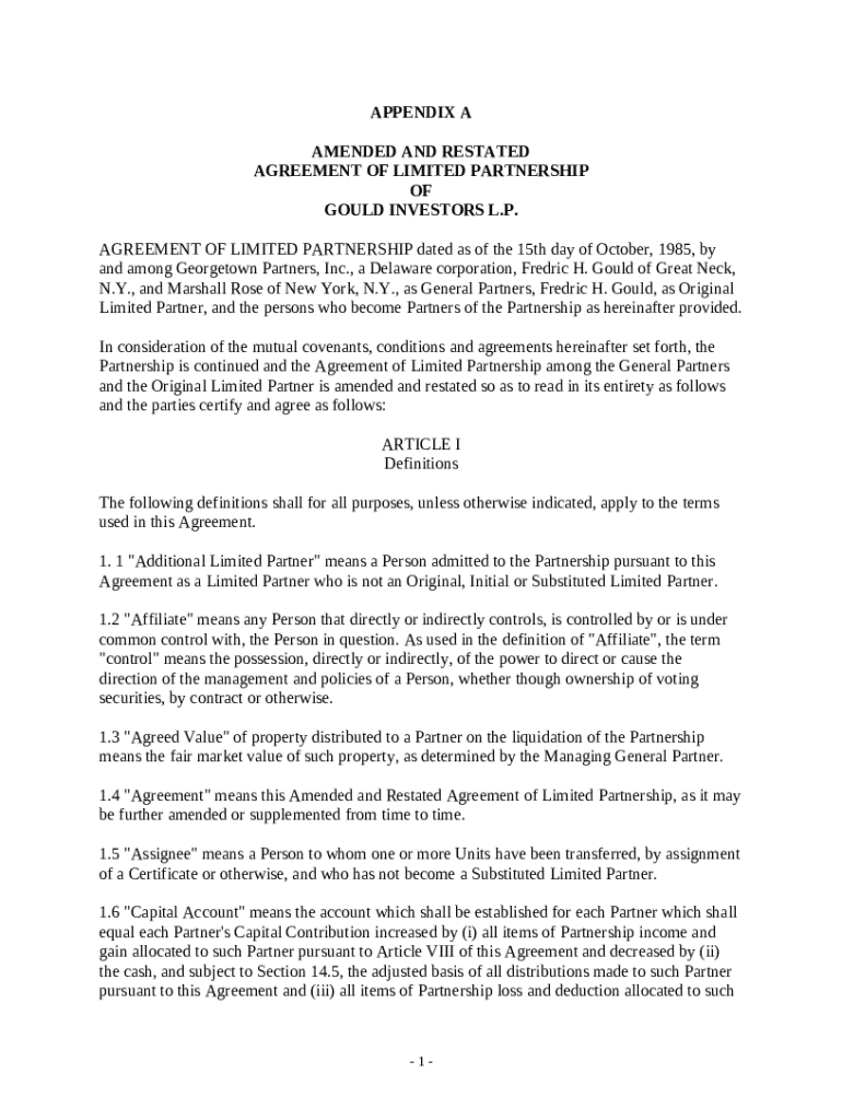 Get the free Sample Amended and Restated Partnership Agreement of the Partnership template