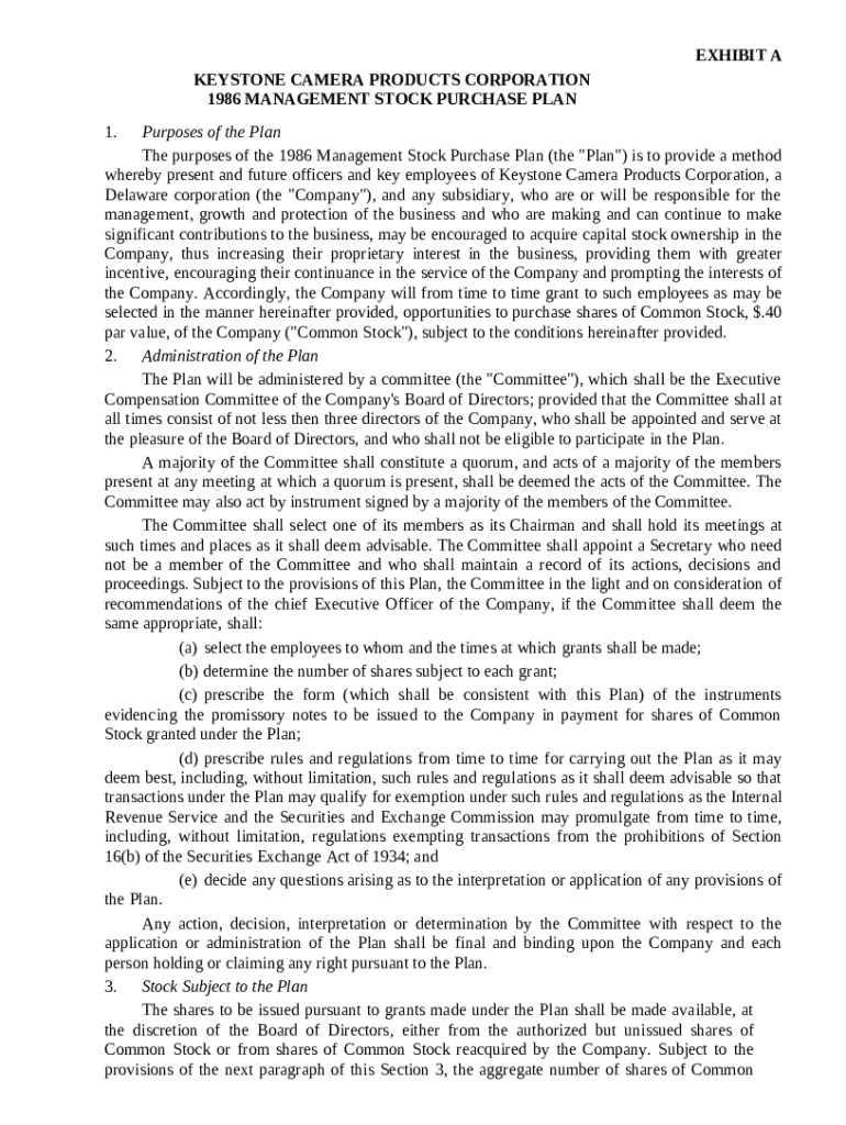 Get the free Management Stock Purchase Plan template