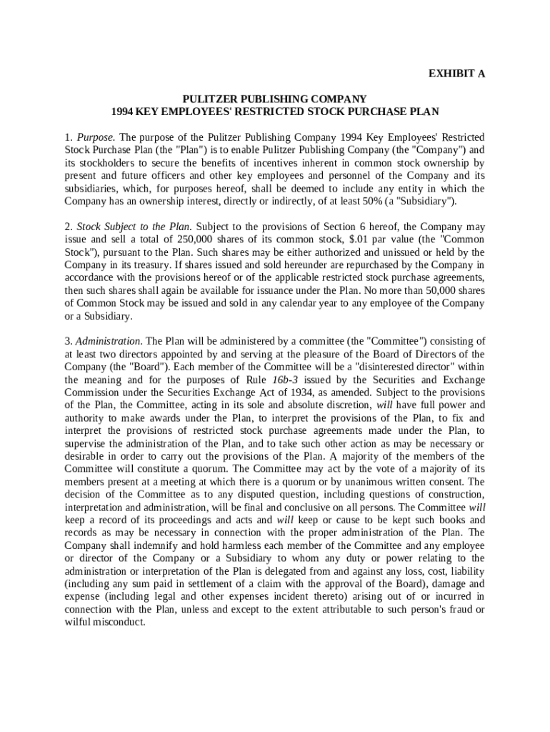 Get the free Key Employees' Restricted Stock Purchase Plan for Pulitzer Publishing Co. template