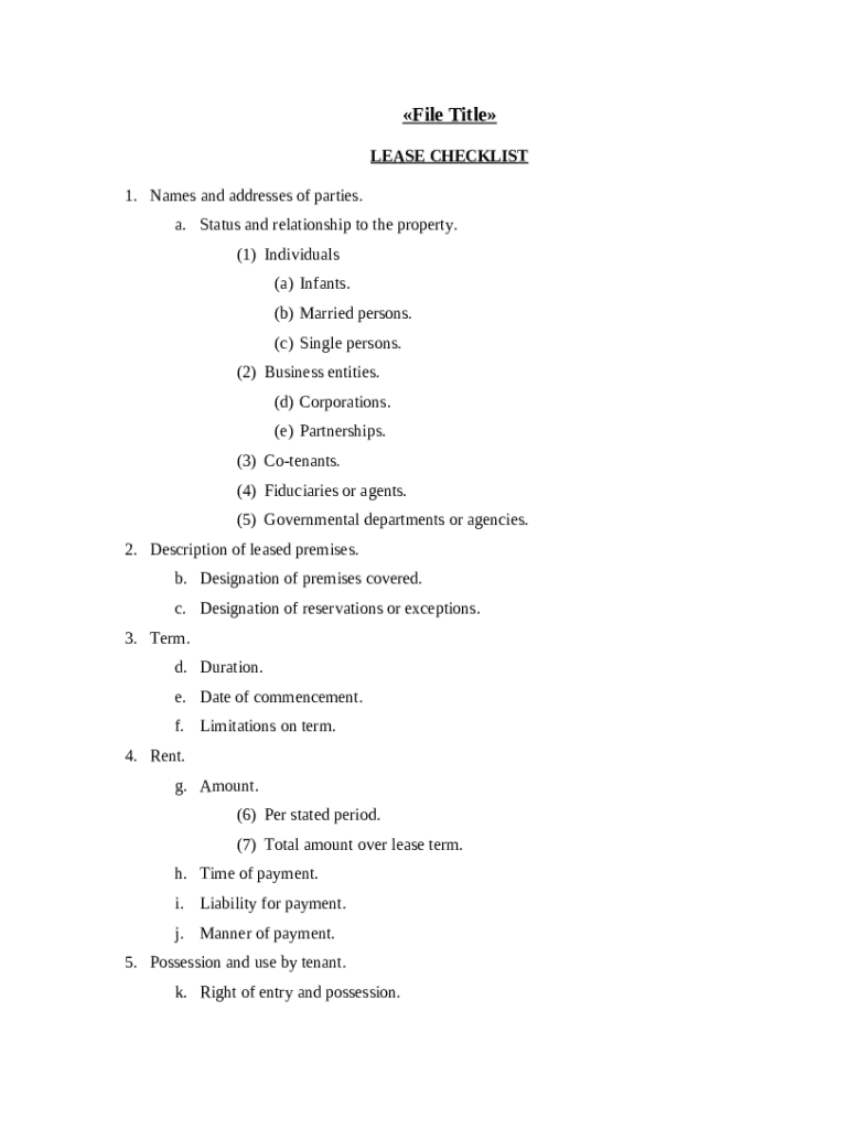 A checklist lease is a document used to outline the essential elements and requirements for a lease agreement.