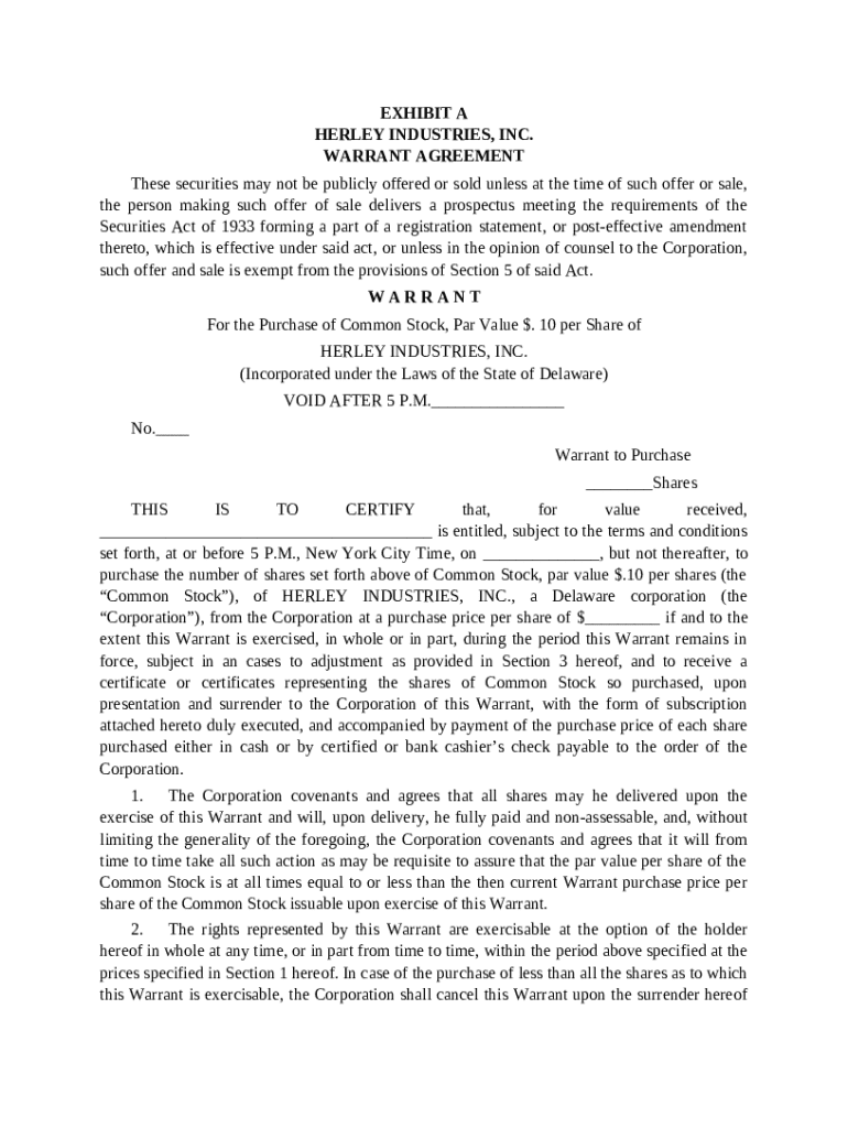 Get the free Warrant Agreement of Herley Industries, Inc. template