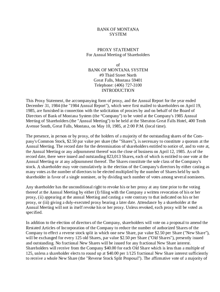 Get the free Proxy Statement of Bank of Montana System template