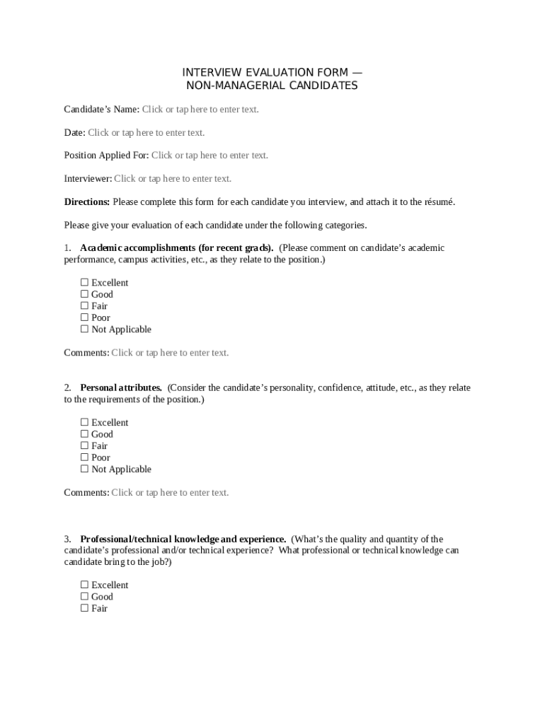 Get the free Interview Evaluation - Non-Managerial Candidates template