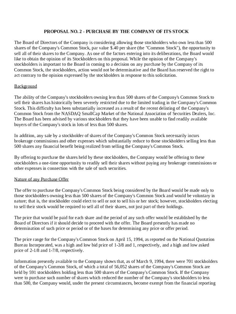 A stock purchase proposal outlines the terms and conditions under which a company offers to buy back its shares from existing shareholders. This process is crucial for stockholders as it can enhance their investment's value and provide liquidity. The Board of Directors plays a significant role in this decision, ensuring that proposals align with shareholder interests and company strategy.