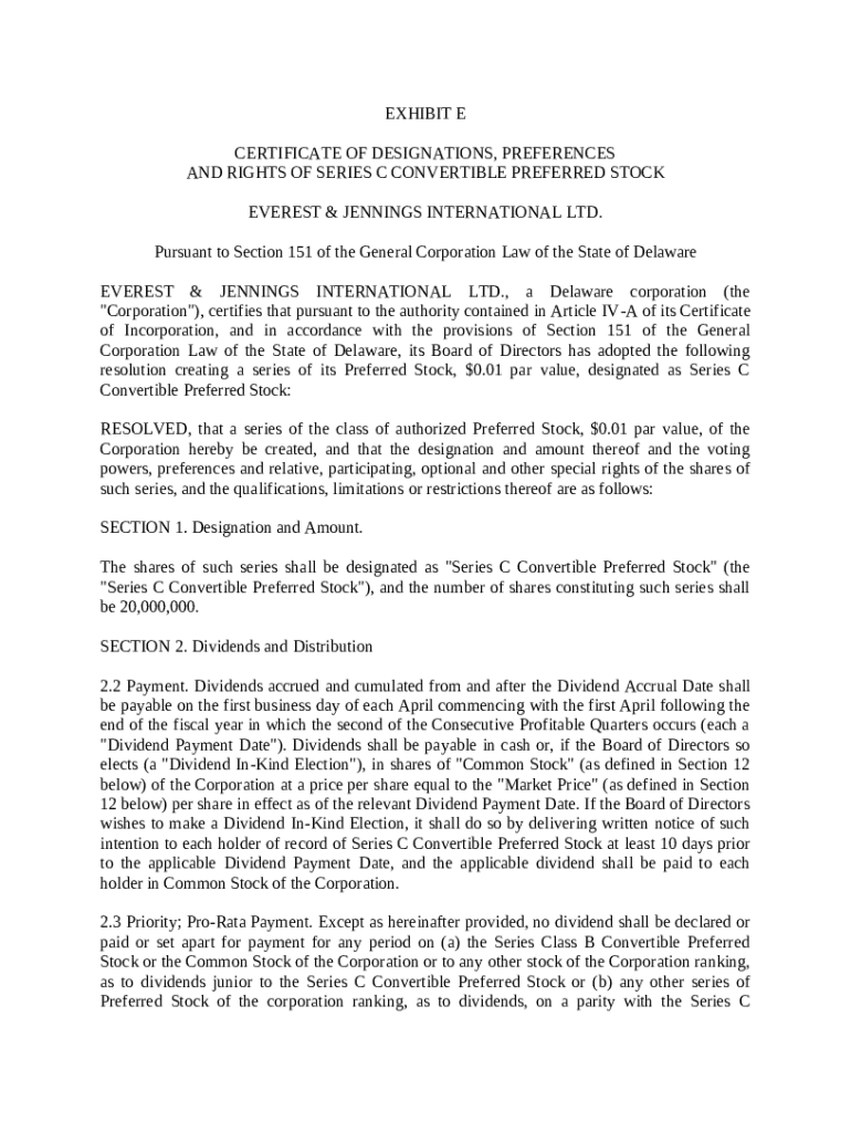 Get the free of Certificate of Designations, Preferences and Rights of Series C Convertible Prefe...