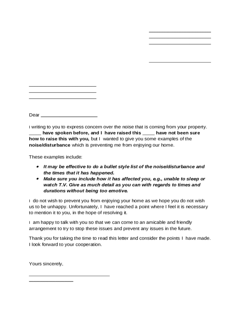 These letters can be necessary in cases such as loud music, outdoor gatherings, or ongoing disruptions from pets.