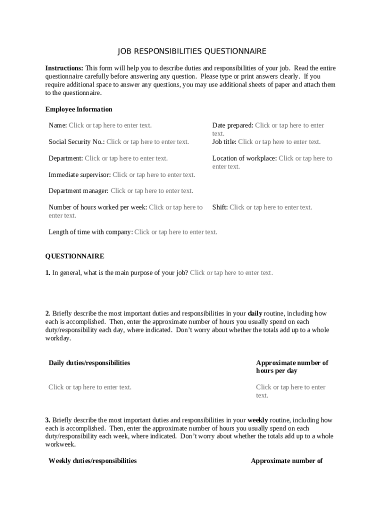 Comprehensive Guide to Job Responsibilities Questionnaire Form