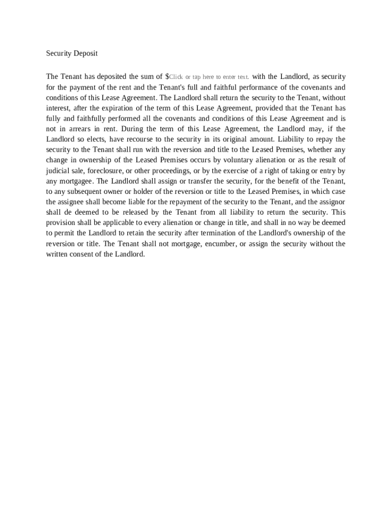 2.Locate the section labeled 'Security Deposit Clause' within the document.
