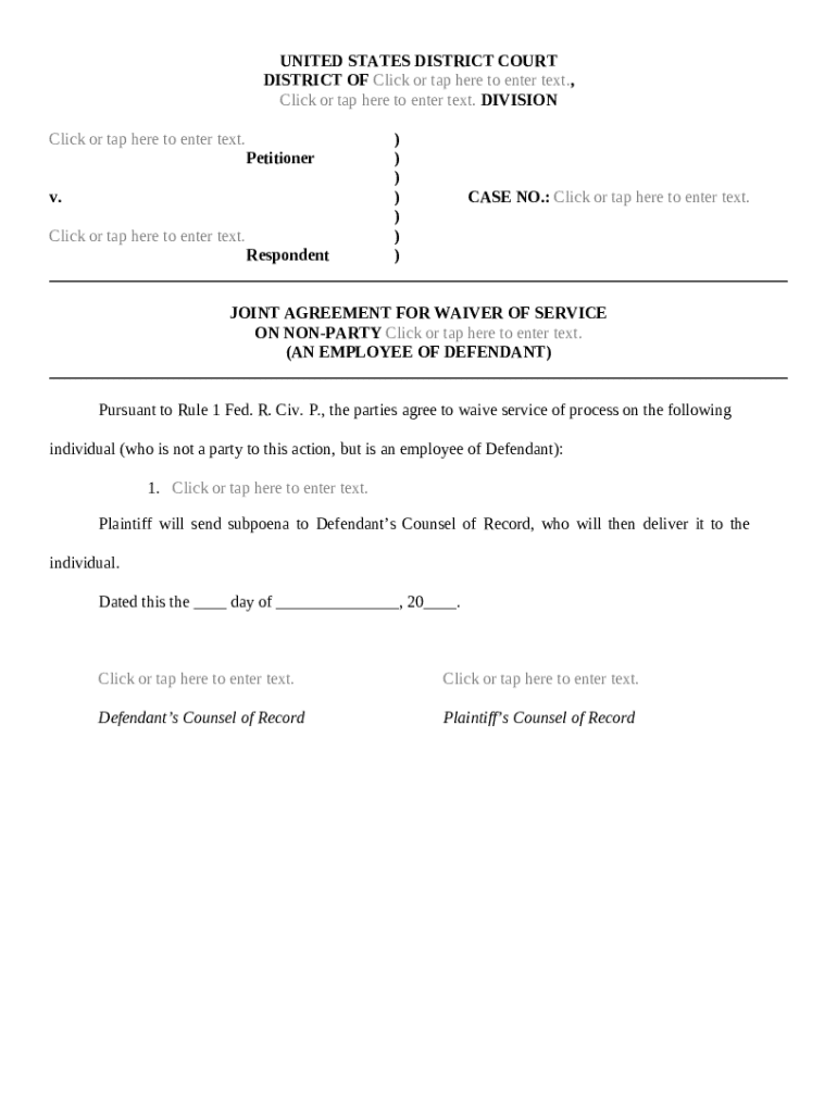Get the free Joint Agreement of Waiver of Service on Non-Party template