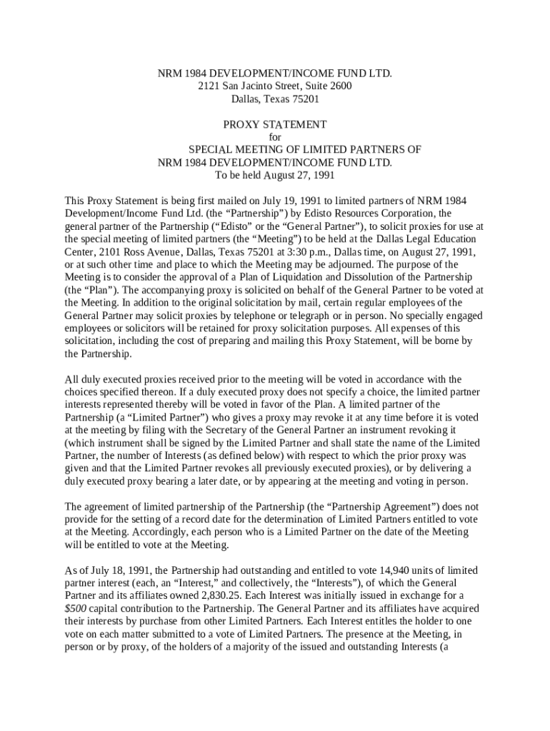 Get the free Proxy Statement - NRM 1984 Development Income Fund Ltd with exhibit template