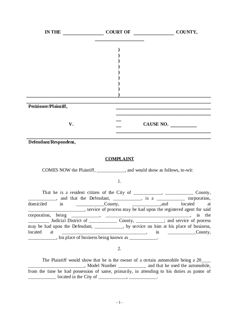 Get the free Complaint regarding Trover and Conversion of Auto by Mechanic template