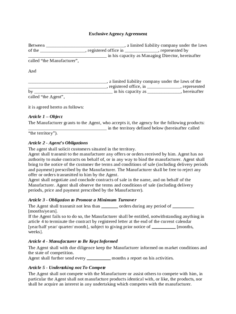 Get the free Exclusive Agency Agreement template
