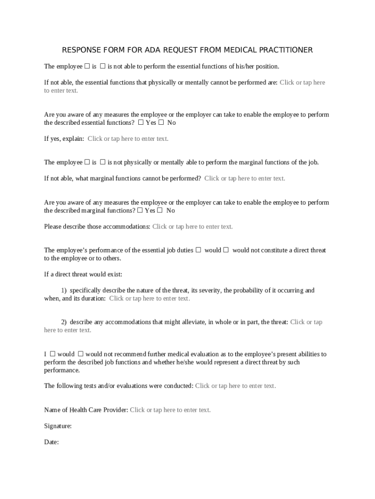 Complete Guide to Response Form for ADA Request from Medical Practitioner