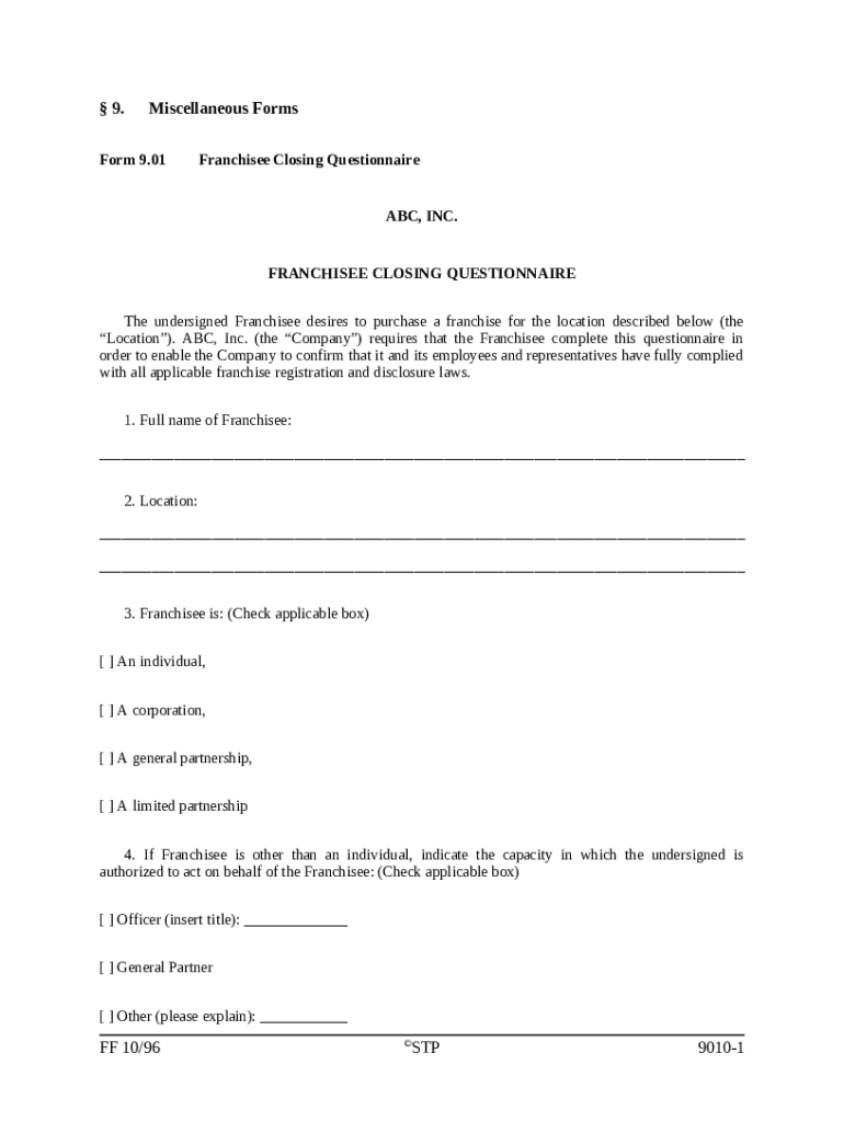 How to fill out a franchisee closing questionnaire form