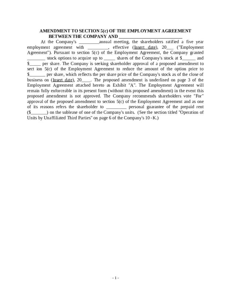 Get the free Amendment to Section 5(c) of Employment Agreement with copy of Agreement - Blank tem...