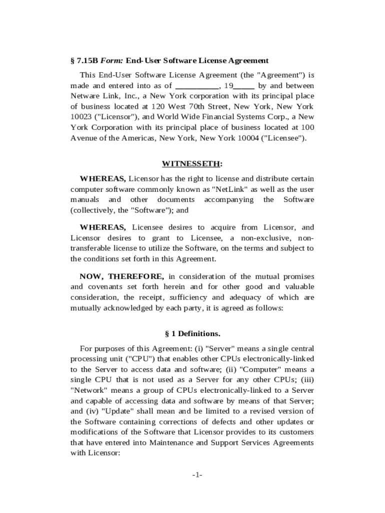 As a way to start filling out the form End User Software License Agreement, you will need a template of it. When you use PDFfiller for filling out and submitting, you can get it in a few ways:
