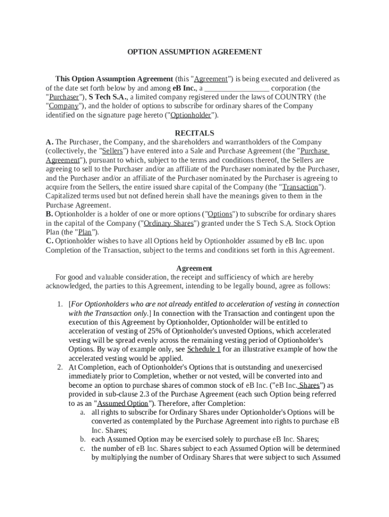 Get the free Option Assumption Agreement between the Purchaser and Company template
